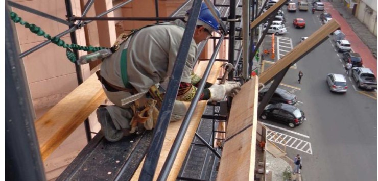 PL – A empresa se especializou em função dos trabalhos técnicos que foram desenvolvidos pelo Arquiteto Edegar Bittencourt da Luz, no Chalé da Praça XV, no ano de 1972. Daí surgiu uma grande paixão por parte dele em função do desafio que é executar obra de restauração, com todas suas minúcias e detalhes. O planejamento parte do tipo de trabalho que vai se executar, mas normalmente ele é adequado às condições existentes na obra. Normalmente, ocorrem modificações no planejamento em função de acréscimos das patologias existentes na obra. A especialização dos trabalhadores vem com o tempo de empresa. À medida que eles vão trabalhando na empresa, vão aprendendo a utilizar as técnicas de restauro, com os colegas de trabalho mais antigos. Temos uma parte da equipe que trabalhou anteriormente nesta obra, mas não chega a 20% do pessoal, devido à alta rotatividade da construção civil.